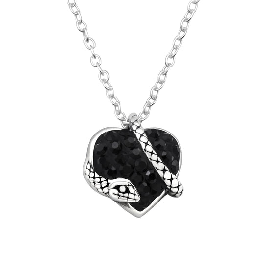 Crafted from 925 Sterling Silver, this sleek Snake Heart Necklace with Crystal has a smooth Silver Plated + E-Coat finish.