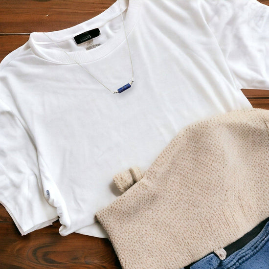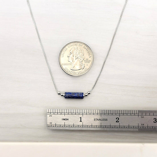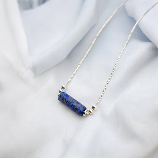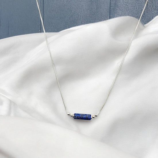 Simple styling never goes out of fashion, and when paired with Lapis Lazuli you know you have a winner. This sterling silver handcrafted necklace features an adjustable Sterling Silver Box Chain with Sterling Silver beads and a genuine Lapis Lazuli gemstone. Hand crafted and created from the design workshop of Bijou by SAM this necklace is high quality and delightfully presented.