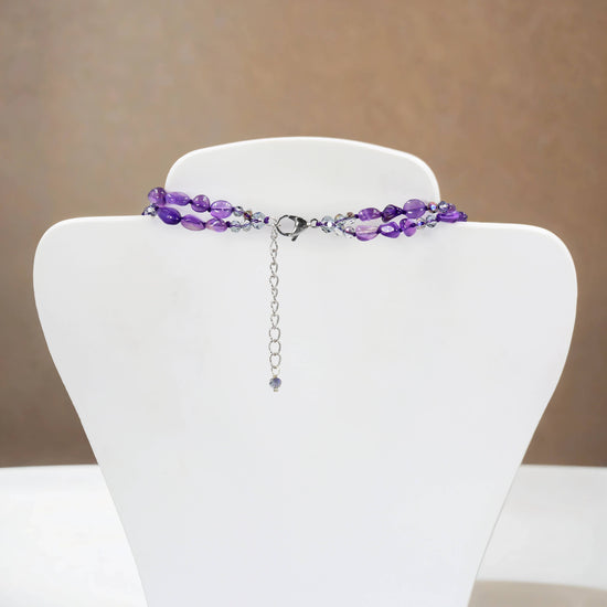 Truly beautiful Amethyst beaded necklace with a rose shaped amethyst pendant.
