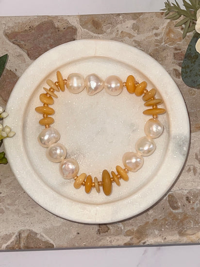 Yellow Jade & Cultured Pearl Beaded Stretch Bracelet