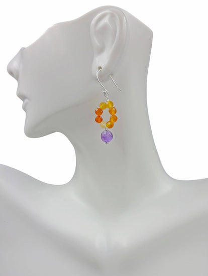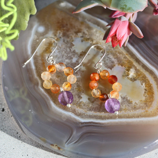 Keep things light and fun with these beaded hoop earrings featuring lively carnelian and amethyst stones. Handcrafted they are finished with sterling silver hooks.