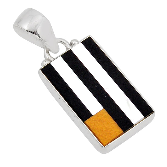 This delightful pendant is made from quality sterling silver with onyx and pearl stripes. The additional Tigers Eye corner creates a level of interest for the piece and the shimmering pearl glows against the shining black onyx. Featuring a modern baguette shape, it is the geometric simplicity that makes this pendant a standout.