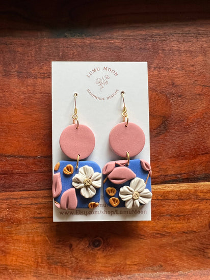 These earrings are made from lightweight polymer clay. Surgical stainless-steel hooks have also been used, making them friendly for sensitive ears. Earrings in the Blue Blossom collection was inspired by the cold Winter days in Melbourne. Although the days are cold and gray, I used a bright blue tone with pink leaves and creamy white florals to give a bright addition to your day. Lumu Moon’s handmade polymer clay earrings are handmade with love and may show slight variations from the images. The differences make your piece special and one of a kind.