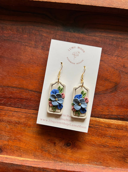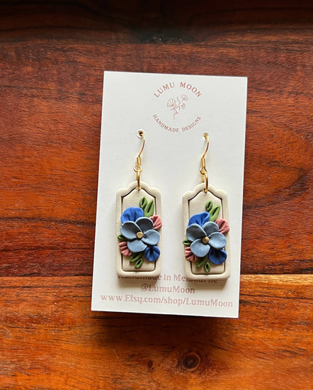 These earrings are made from lightweight polymer clay. Surgical stainless-steel posts have also been used, making them friendly for sensitive ears.