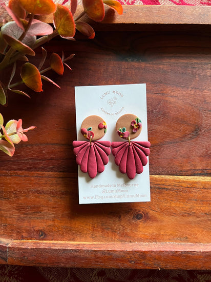 These earrings are handmade using lightweight polymer clay. Surgical stainless steel posts/hooks have also been used making them friendly for sensitive earrings. Earrings from the "Cosy Red Floral" collection were created during the Melbourne Autumn. The leaves are changing from Green to Brown and Red. My cosy knits are coming out of my wardrobe too. The colours are inspired by this time of year. I absolutely love the red leaves on the trees in my neighbourhood, they are simply beautiful.