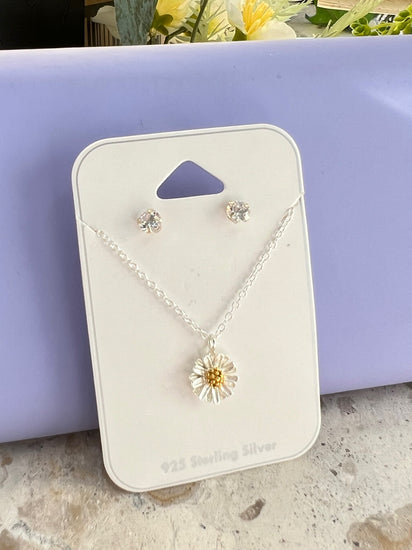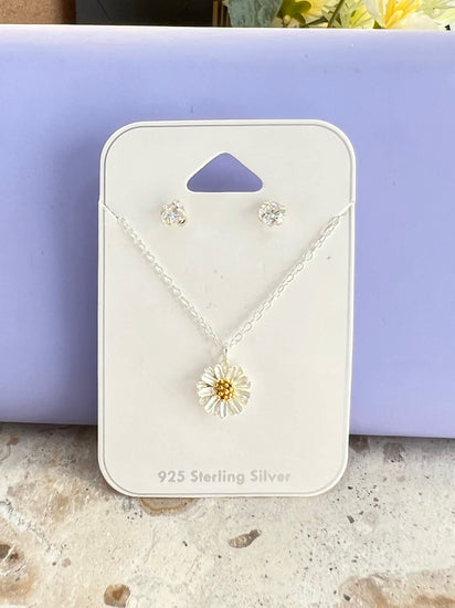 Sweet Daisy silver pendant and cubic zirconia earrings make this set a lovely gift. The sweet daisy has additional silver and gold plating that takes it to the next level in shiny!