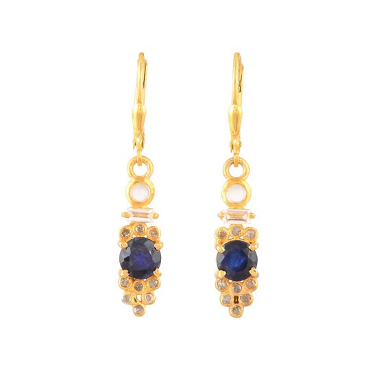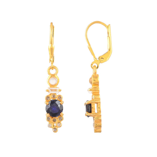 These stunning earrings feature an array of gemstones in a vermeil gold finish. Expertly crafted in sterling silver then thickly coated with lavish gold vermeil, they showcase a brilliant central sapphire and are adorned with dazzling diamonds, topaz, and a gleaming moonstone. Representing the September birthstone, sapphires add a touch of elegance to these exquisite earrings.