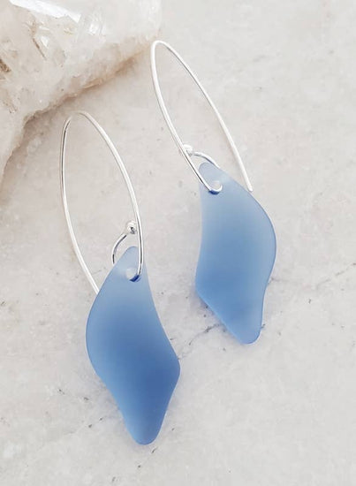 These fun yet elegant wavy shaped cultured sea glass earrings are lightweight and elegant. The eco cultured sea glass earrings are made with high-quality frosted glass that resembles ocean tumbled beach glass and comes in uniform shape and size.
