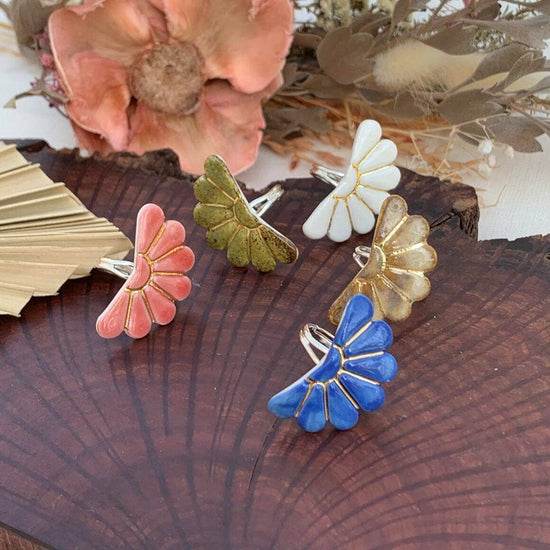 Hand created in the Wolf and Clay studio in the Hinterland of Agnes Water in Australia. Each piece is fired multiple times in a kiln, with temperatures up to 1250 Celsius degree. This gives it a stone like appearance as well as sustainable qualities such as it doesn’t absorb water, has a stone feel to it and absorbs body temperature.. Each charming unique piece is then glued onto an adjustable silver tone ring for comfort and a perfect fit. Designed and handcrafted by the Australian artist Wolf and Clay.