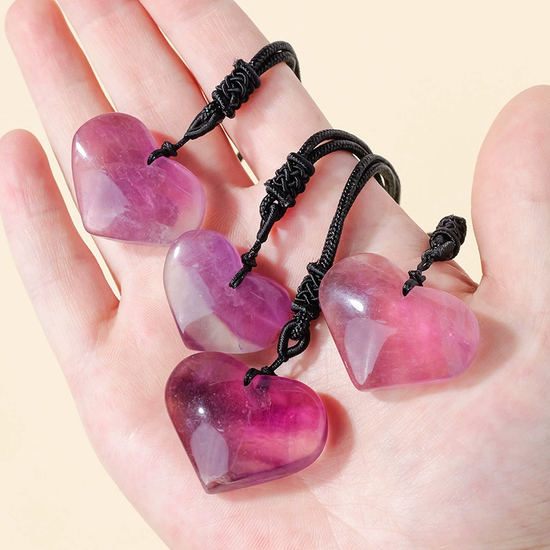Add a touch of calm and clarity to your day with this beautiful Fluorite Heart Necklace. Featuring a polished 3cm heart-shaped fluorite pendant, this piece is strung on a simple rope for a natural, minimalist look.