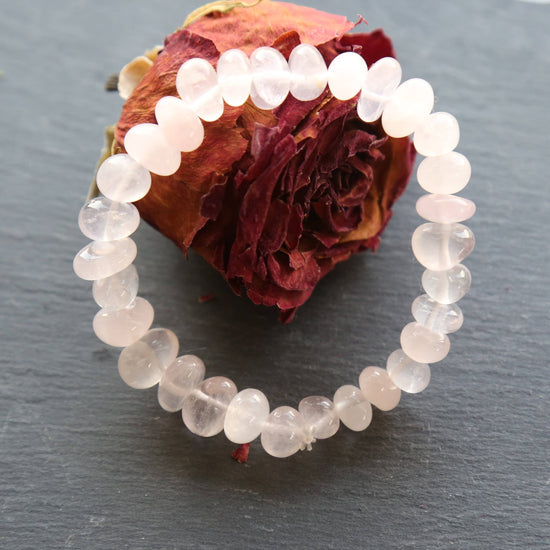 This rose quartz bracelet showcases the favourite soft Rose Quartz that is highly popular.