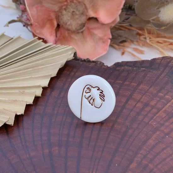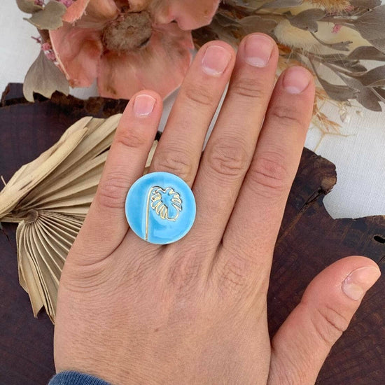 This Handmade Porcelain Ring with inlaid Monstera leaf gold finish is exquisite and perfect to add to your outfit for indoor and outdoor summer gatherings.