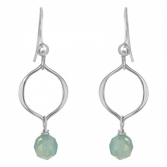Simply modern! These beautiful arabesque shaped sterling silver open links are adorned with swarovski elements crystals in pacific opal and boast an eastern flair! These versatile earrings are perfect addition to your jewelry collection or give it as a special gift.