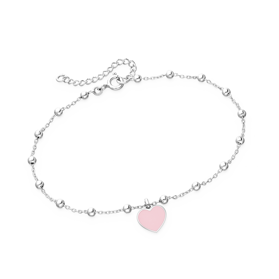 This ball bracelet carries an adorable enamel heart charm in whisper pink. Very feminine and sophisticated and crafted in finest sterling silver, the bracelet is a versatile accessory addition to your wardrobe.