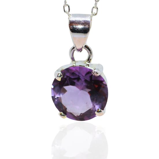 Introducing our Sweet Amethyst Silver Pendant, a piece of jewellery that you will love to wear every day. This dainty pendant features a round amethyst gemstone set in a delicate silver setting, perfect for adding a touch of elegance to any outfit. The clear purple colour of the amethyst is beautifully faceted to catch the light, creating a stunning and eye-catching sparkle. If you are looking for a discerning gift, this sweetie is sure to charm, especially as amethyst is the February birthstone.