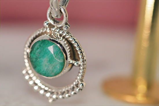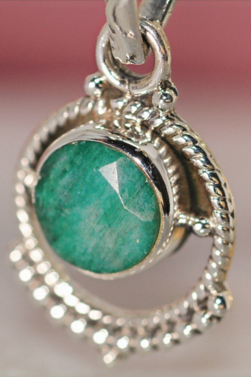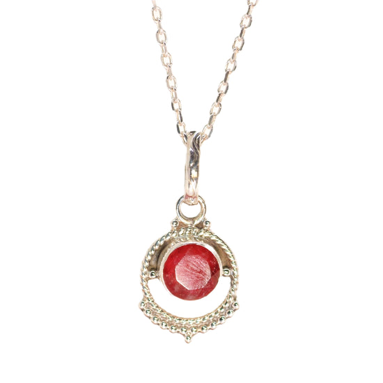Choose your precious gemstone between Emerald or Ruby and enjoy a dash of elegance. The 'In a Circle' pendant fits beautifully being just the length of a 5 cent coin. This small pendant is handcrafted in sterling silver and looks great for everyday wear.