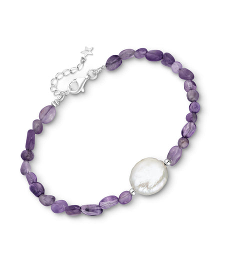 This magnificent 925 Sterling Silver Bracelet features exquisite purple amethyst gemstones and genuine freshwater pearls, believed to instill feelings of peace and tranquility in the wearer. As the birthstone for February, it also makes for a meaningful gift for a loved one or a treat for you.