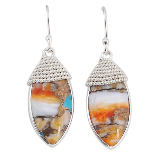 A beautiful example of the varied colours to be found in spiny oyster turquoise jewellery are these silver encased dangle earrings. The sterling silver earrings are made with polished Arizona turquoise and spiny oyster shells only found in the Gulf of California. Spiny oysters are one of the oldest jewellery options, originally used by Southwest Native Americans. These stunning oyster shells are now known for their infinite beauty and allure all across the globe.