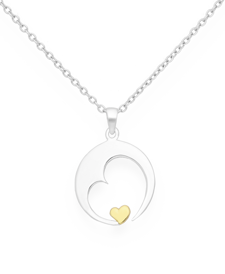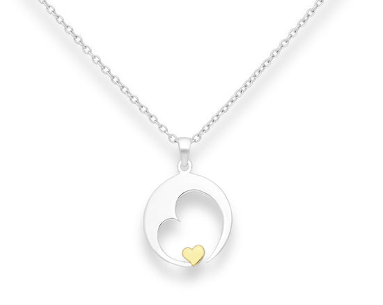 Express your devotion to family with this silver heart pendant embracing a tiny gold heart. The pendant is crafted in sterling silver and accented with 18K gold plating. It is the perfect gift for the love in your life.