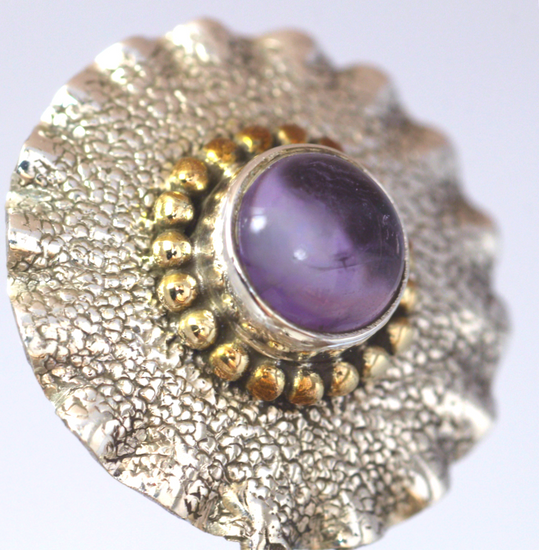 Add to your personal look with our Thistle Amethyst Silver pendant. Made with sterling silver, this unique pendant features a purple amethyst central stone, weighing 2.4 carats, and set on hammered silver for a custom look.