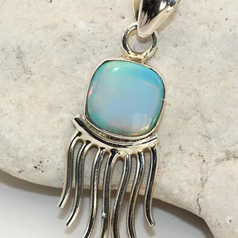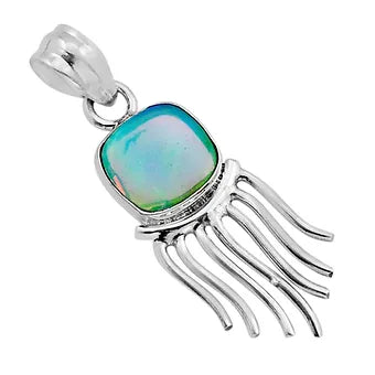 Jewellery is not a serious topic when it comes to our Jelly Opal pendant. There was a choice of names for this unique piece that ranged from '"Hula" to "Bad Hair Day". But no matter what you call it, this pendant has a wonderful depth of colours in the created Aurora Opal, from ocean blue to bright green with flashes of pinks in-between. The pendant is hand made with 925 silver and the opal is set in a silver bezel. All set for fun times.