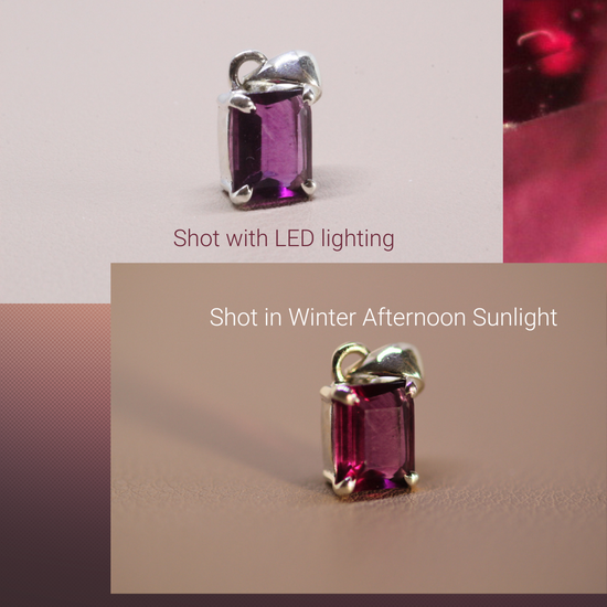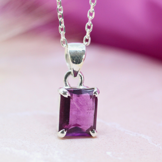 Apatites are called a colour changing gems as they reflect different colours in the light. This pendant shows pink to purple in good light, and leans to red wine tones in the evening.