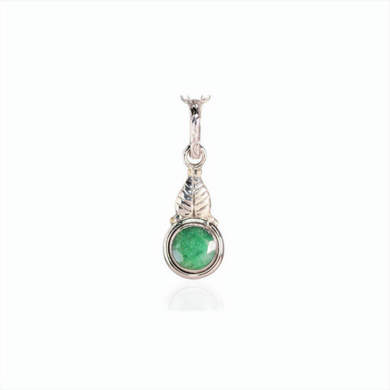 This nature inspired silver pendant showcases natures gifts with a glistening silver leaf and a natural Emerald 'berry'. Small and chic it is a great daytime pendant for any where.