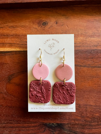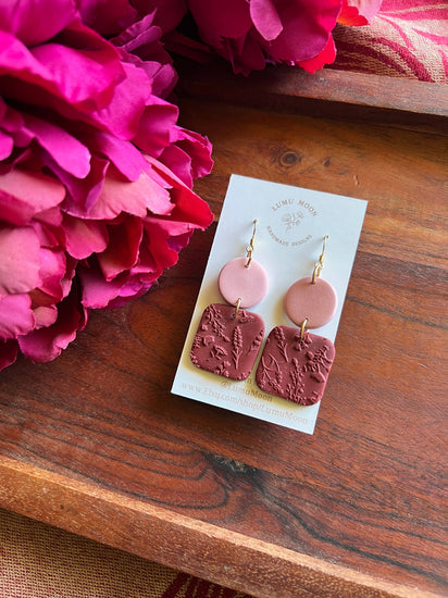 Red and Pink Floral Texture Dangle Earrings are handmade using lightweight polymer clay. Surgical steel posts/hooks have also been used making it friendly for sensitive ears.