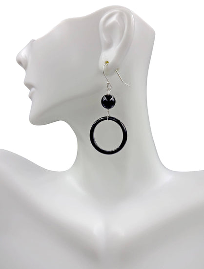 Enjoy these polished Onyx earrings styled with a solid bead and swinging circle. Enjoy the retro feel of this trending earrings set on sterling silver hooks
