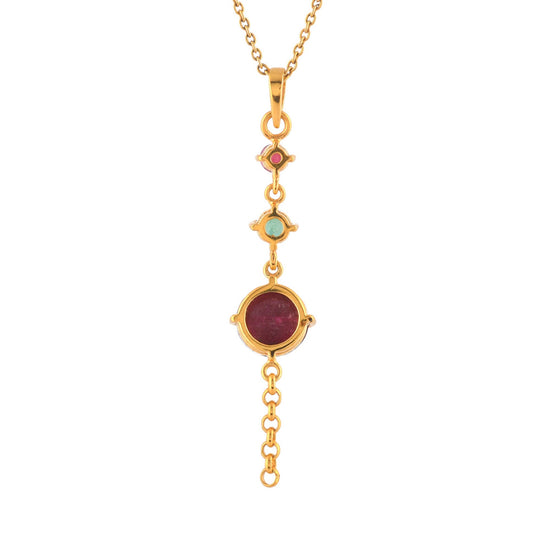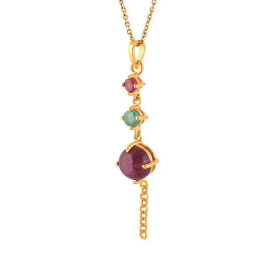 Crafted with the finest 925 sterling silver, coated with a lavish 2.5 micron gold plating, and adorned with an exquisite emerald and two breathtaking rubies, each totaling 1.60 carats. The emerald and rubies are natural gemstones, with the ruby undergoing a specialized treatment for enhanced color. Measuring 54mm in length and 9mm in width, this listing is exclusively for the discerning.