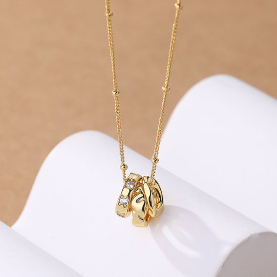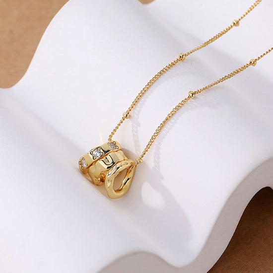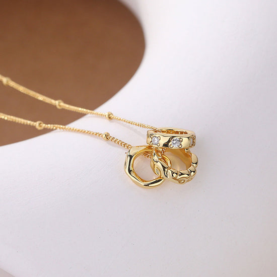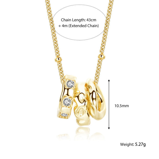 This highly fashionable pendant has three gold rings feature set with sparkling cubic zirconia. Crafted using full 925 sterling silver, and smoothly gold plated for a rich finish the necklace is made to wear day to night.