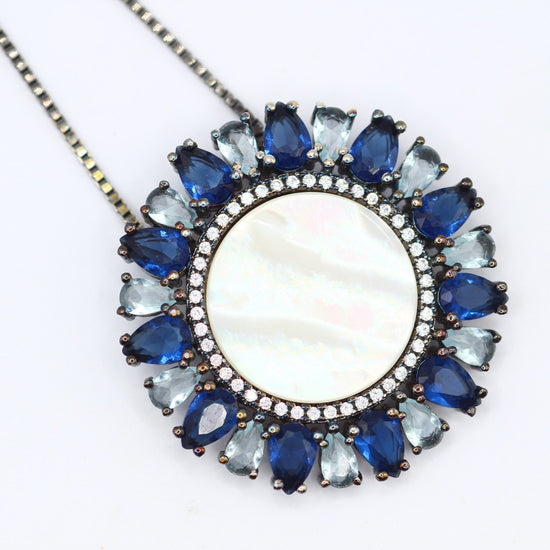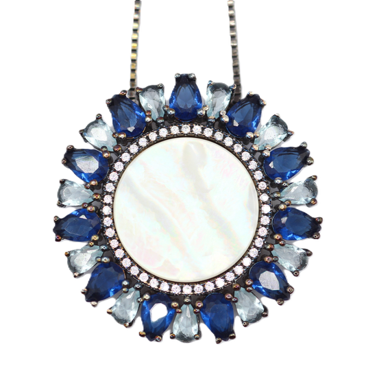 Add this stunning necklace with a black rhodium plated chain to your jewelry collection and cherish it for years to come. With its one-of-a-kind design, this necklace is expertly crafted in sterling silver and features created Sapphires, Topaz, and Pearl on an adjustable chain. Perfect for pairing with a cocktail dress for a truly awe-inspiring look.