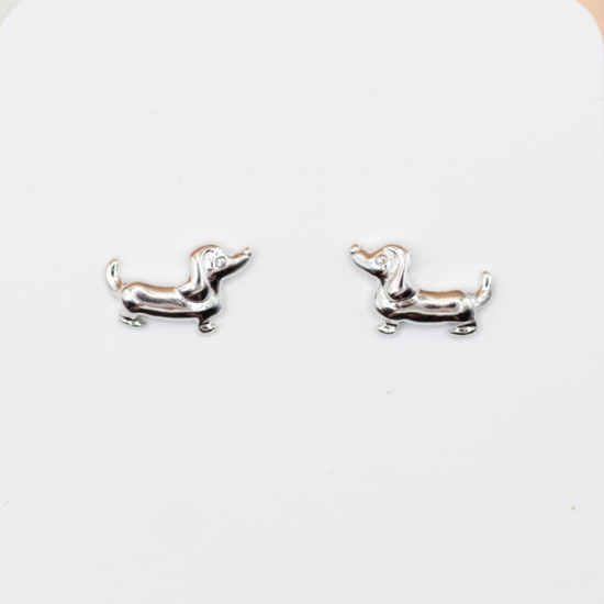 These adorable quality sterling silver earstuds feature cute daschund doggies for a fresh and fun look. Finished with a rhodium plating for a high polished shine, these fast selling ear studs make great gifts for pet lovers.