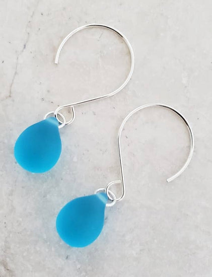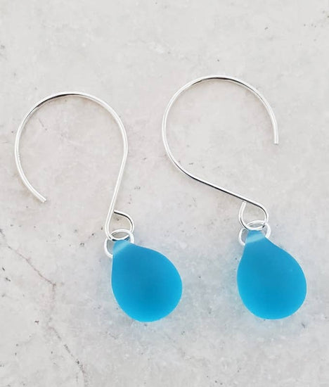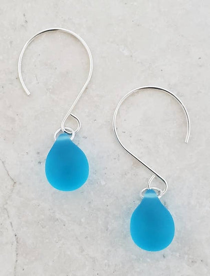 Silver Eco Sea Glass Sea Droplets Earrings - Turquoise
