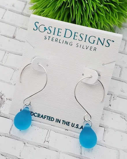 These elegant yet casual sterling silver eco sea glass in teardrop shape make this earring great for gifts or keep them for yourself! The elegant shape of the sterling silver ear wires along with eco sea glass droplets are light and easy to wear. The eco cultured sea glass earrings are made with high-quality frosted glass that resembles ocean tumbled beach glass and comes in uniform shape and size.