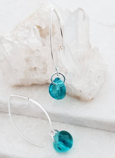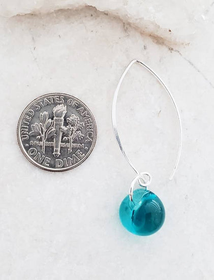 Infuse any elegant ensemble with the classic look of these sterling silver marquis earrings met with beautiful handmade lampwork drops. A classic combination of turquoise hue and silver. Sterling silver marquis ear wires