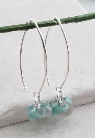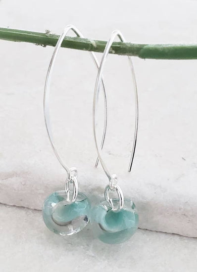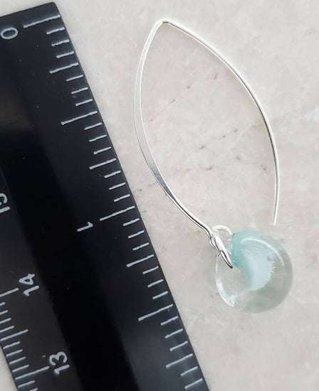 Infuse any elegant ensemble with the classic look of these silver marquis earrings met with beautiful handmade lamp work drops. An exotic combination of sky blue and silver. Sterling silver marquis ear wires.