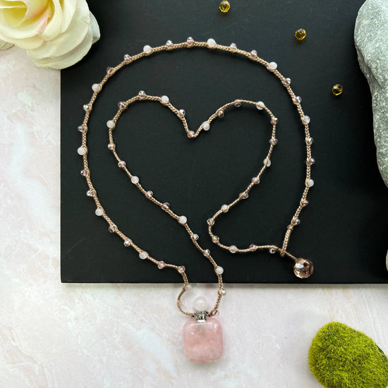 Rose Quartz Gemstone Perfume Bottle Pendant