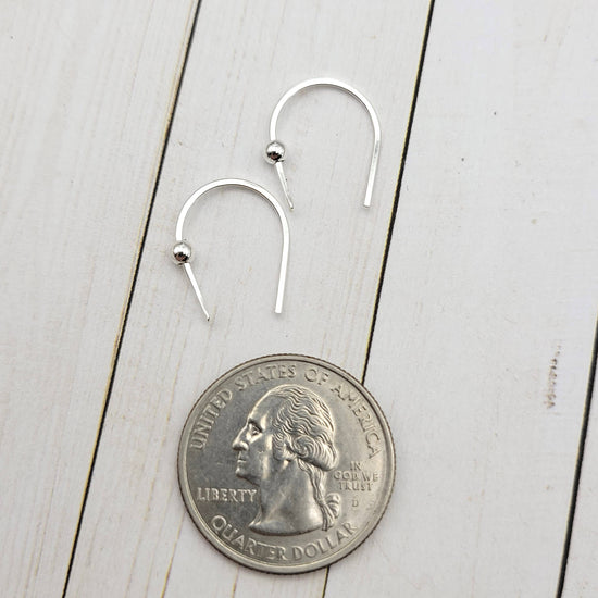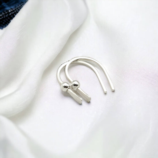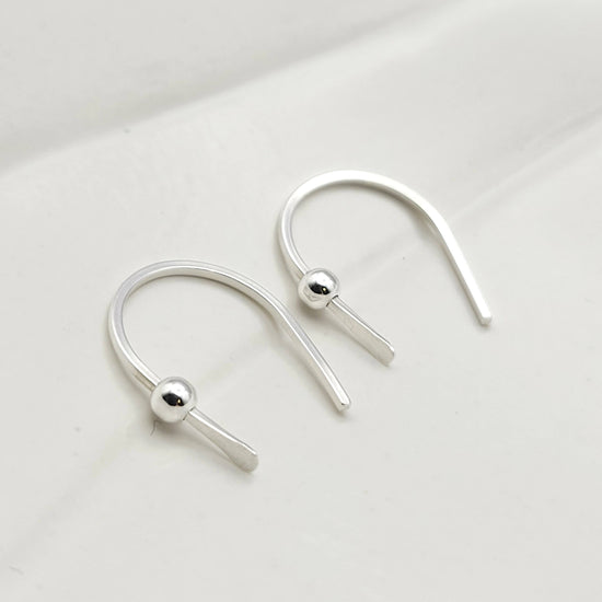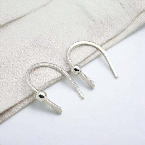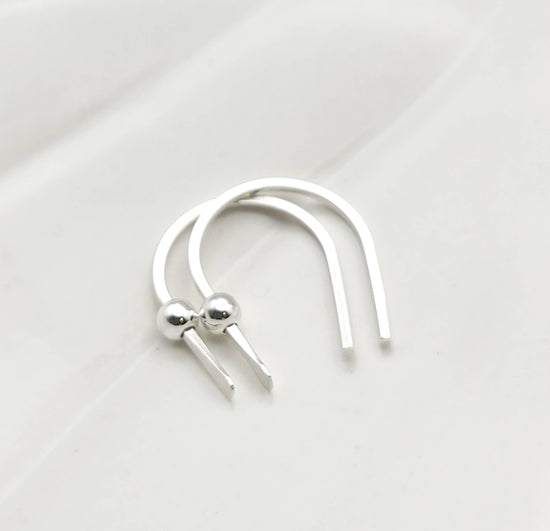 Just arrived and so cute. Experience the must-have accessory for this Summer with these Tiny Silver Hugger Earrings. Handcrafted in the USA using tarnish resistant 940 Sterling Silver wire, these huggers have a unique horseshoe shape and feature a delicate silver bead.