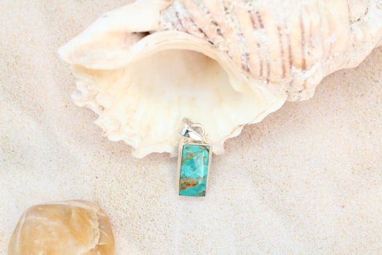 Experience the stunning beauty of the ocean with our Turquoise Sea Pendant. Handmade with genuine turquoise and silver, this pendant brings the relaxing vibes of the beach to any outfit. The Mohave Turquoise is known for its calming and soothing properties, symbolising serenity and peace, simply perfect for those who love the sea and want to add a touch of nature to their style.
