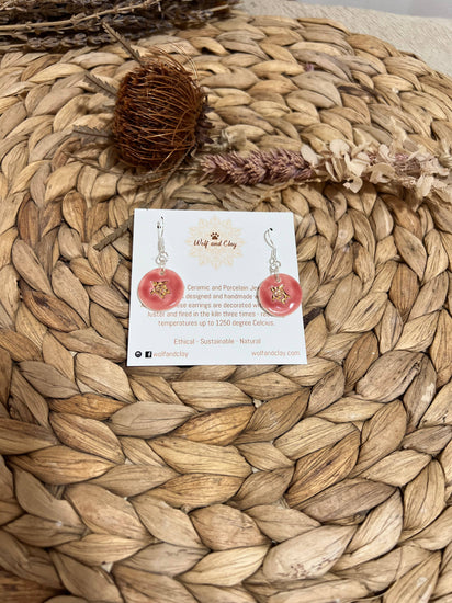 Set on sterling silver hooks these handcrafted ceramic earrings are enhanced with gold print making them truly eye catching.